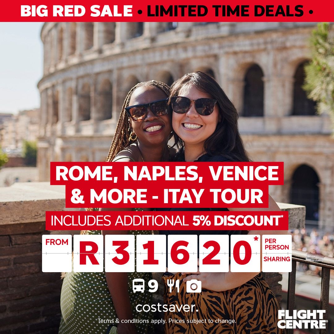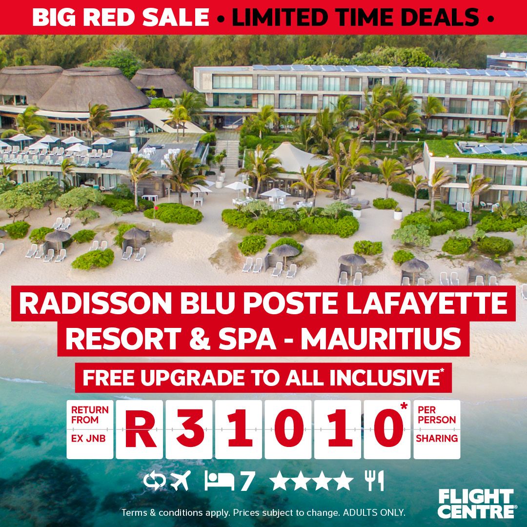 Flight Centre's biggest sale is now on where customers can save up to 50% off tours, 35% off cruises and up to 50% off Mauritius holidays. Plus save on sport packages and flight deals.